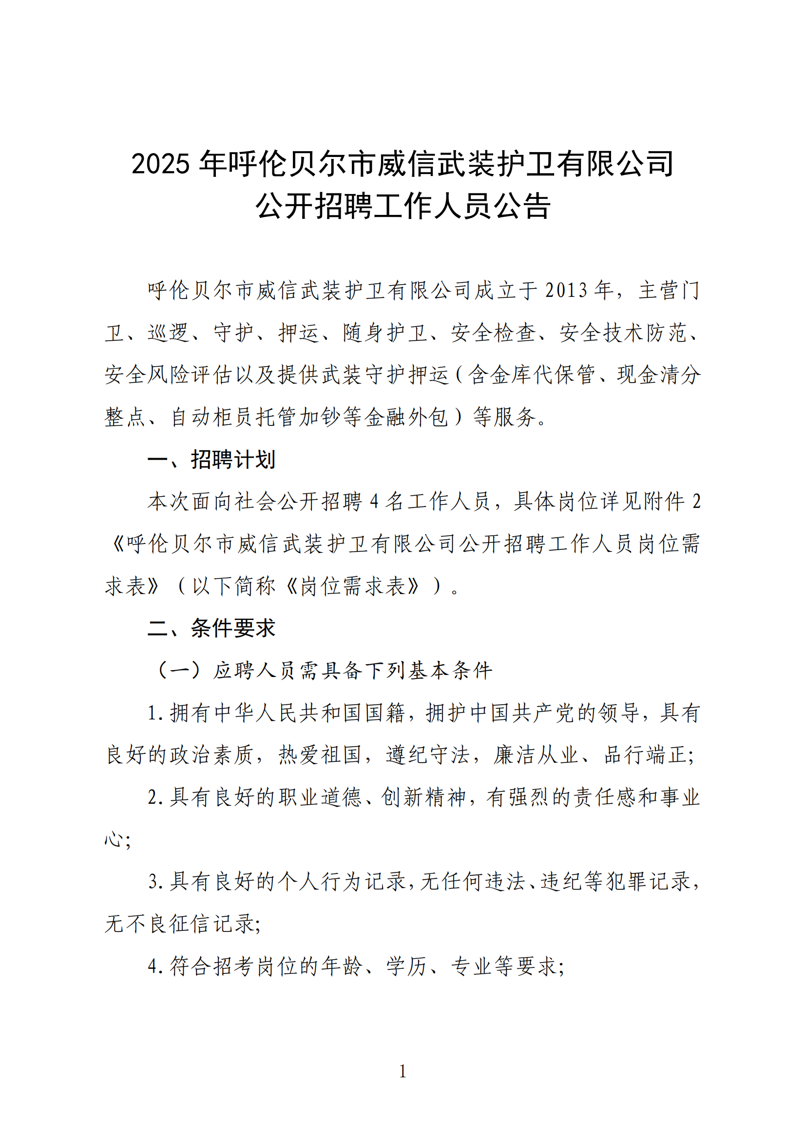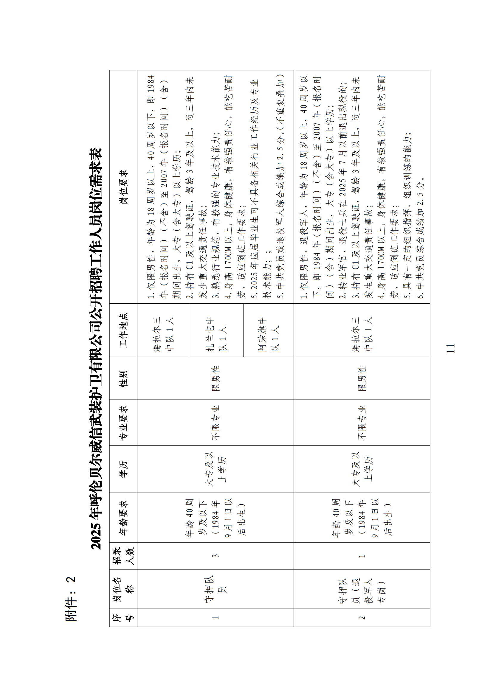 2025年呼伦贝尔市威信武装护卫有限公司公开招聘工作人员公告